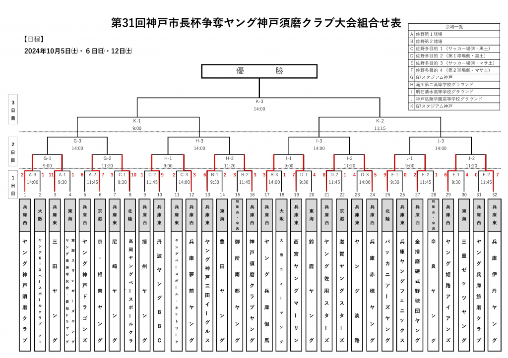 第31回ヤング神戸須磨クラブ大会 1日目(10/5)試合結果