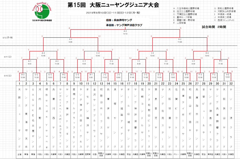 | 兵庫伊丹ヤング | 0 | 0 | 2 | 1 | 0 | 3 | × | 6 |