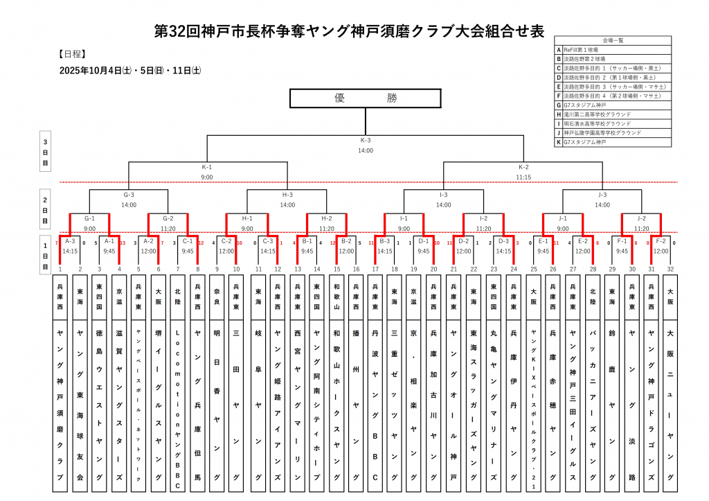 第32回ヤング神戸須磨クラブ大会 1日目(10/4)試合結果