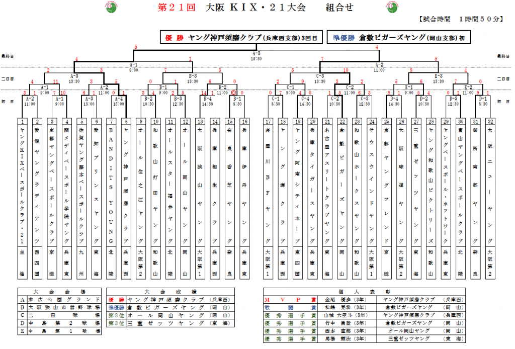 | オール岡山ヤング | 1 | 0 | 0 | 0 | 0 | 0 | 0 | 1 |