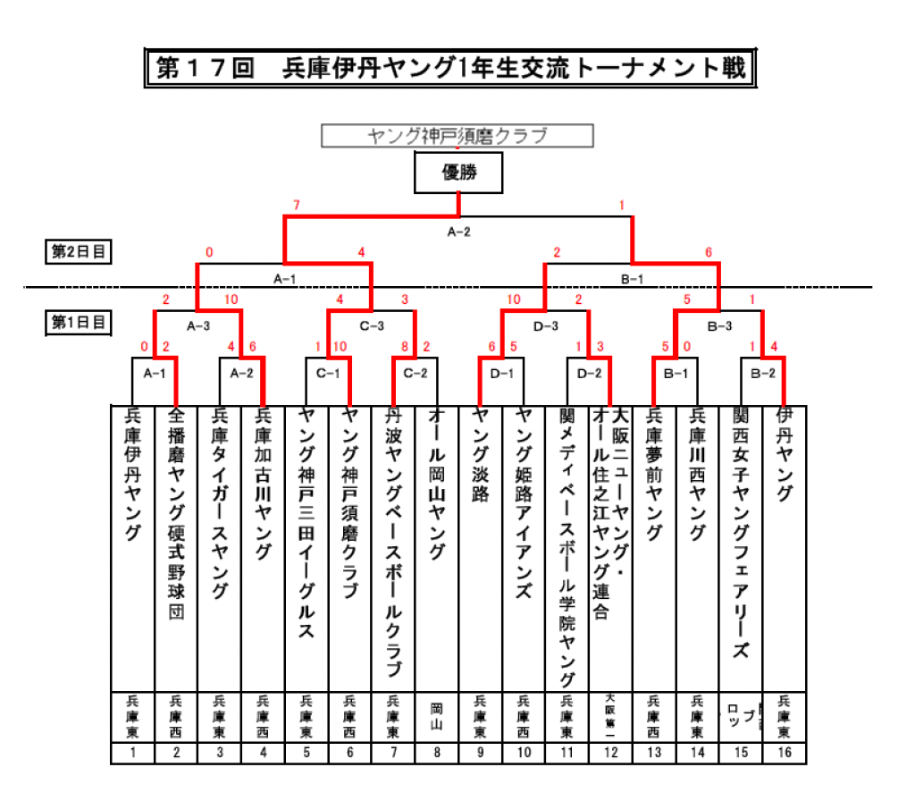 | ヤング神戸三田イーグルス | 0 | 0 | 0 | 1 | 1 | |