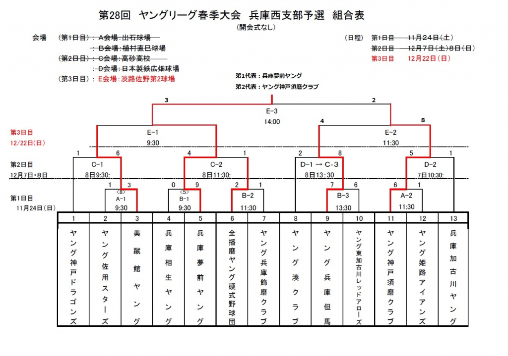 | 兵庫夢前ヤング | 0 | 0 | 0 | 0 | 0 | 1 | 2x | 3 |